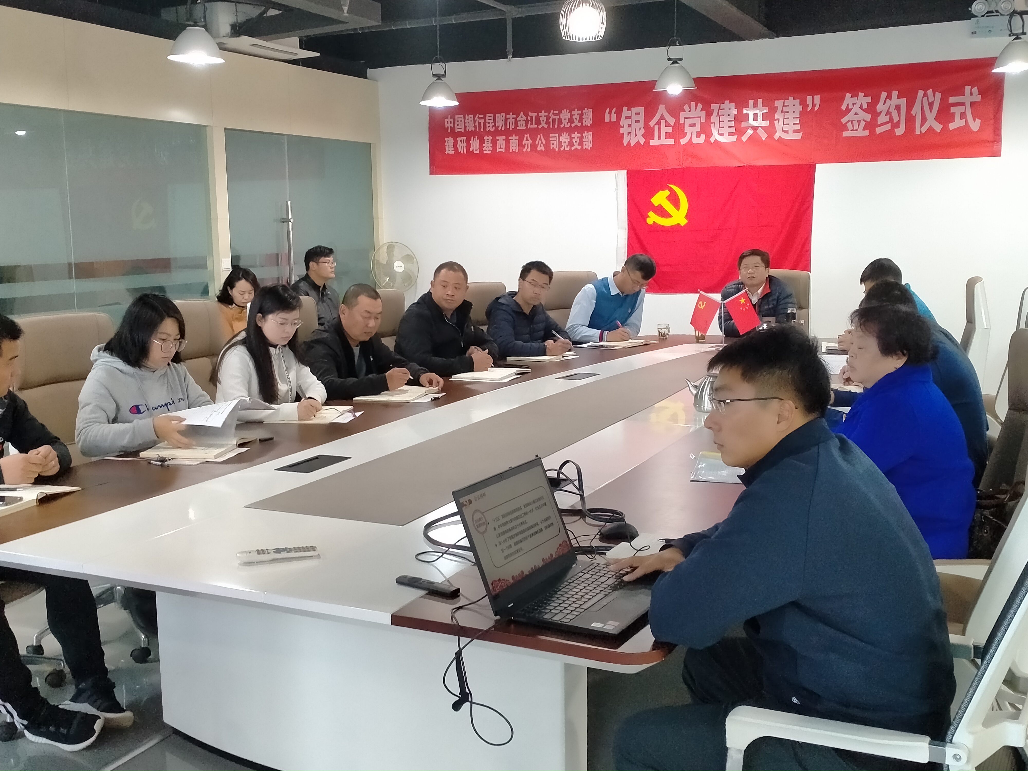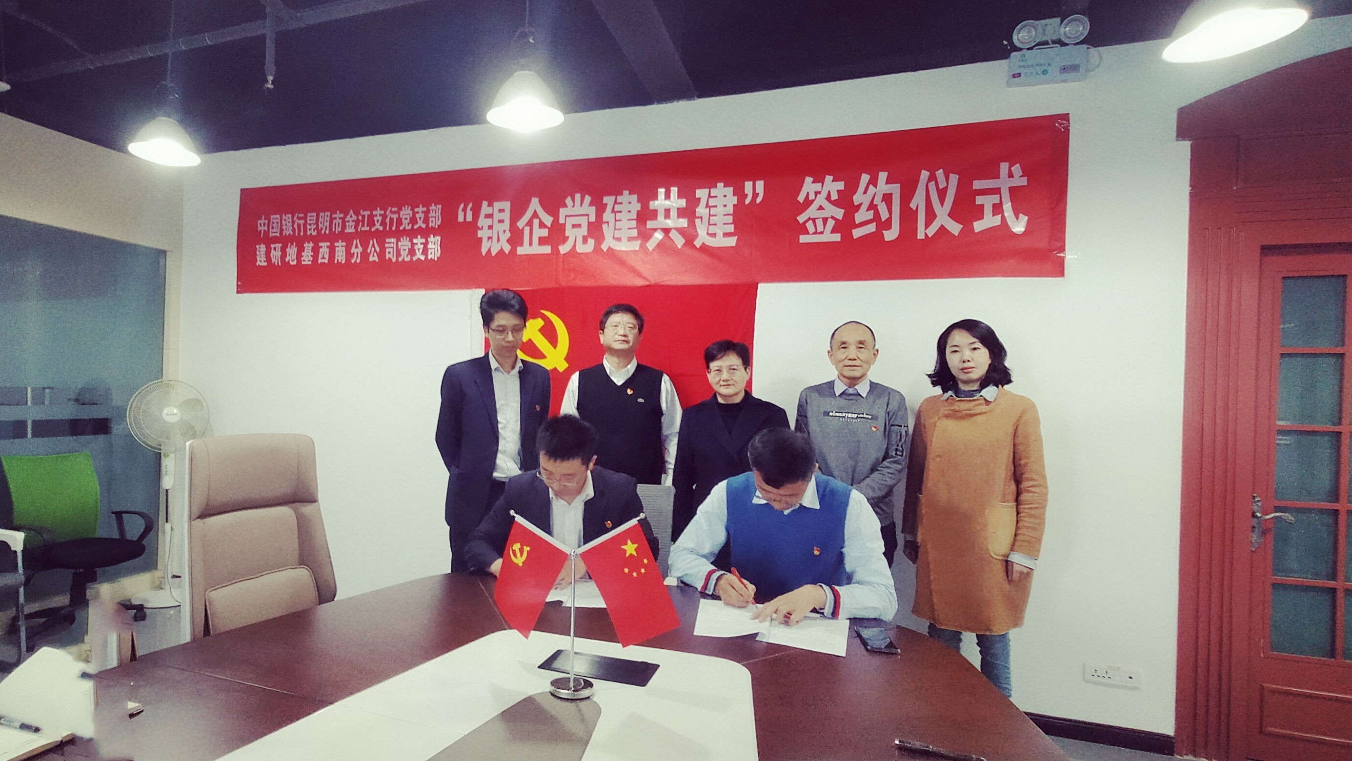 为进一步提升党建工作,推动基层党组织结对共建、双向互动、资源共享,11月20日,建研地基西南分公司党支部在昆明举行了与中国银行昆明市金江支行党支部的“银企党建共建”签约仪式,签订共建协议。