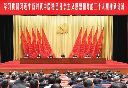 2023年2月7日,新进中央委员会的委员、候补委员和省部级主要领导干部学习贯彻习近平新时代中国特色社会主义思想和党的二十大精神研讨班在中央党校(国家行政学院)开班。中共中央总书记、国家主席、中央军委主席习近平在开班式上发表重要讲话。李强、赵乐际、王沪宁、蔡奇、丁薛祥、李希等出席开班式。 新华社记者 李涛/摄