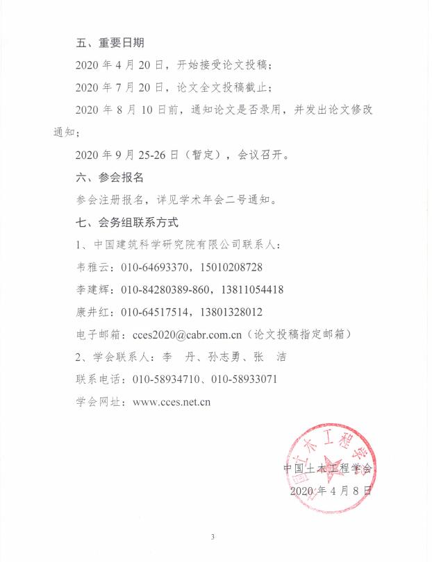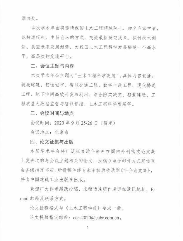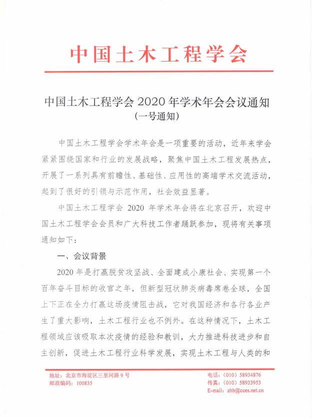 关于转发《中国土木工程学会2020年学术年会会议通知(一号通知)》的通知