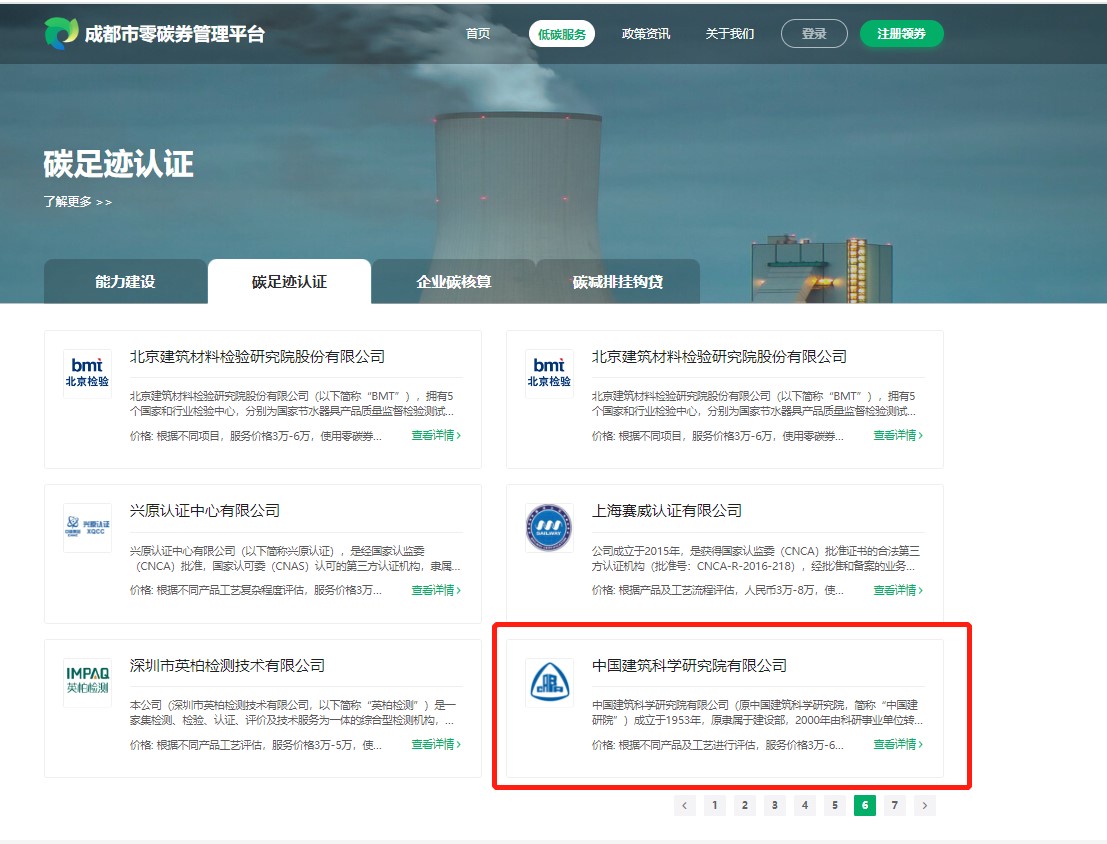 10月15日,中国建研院认证中心凭借在碳足迹认证、全生命周期评价等方面的成功案例和丰富经验,作为服务机构顺利入驻由四川联合环境交易所有限公司建立的成都市零碳券管理平台。