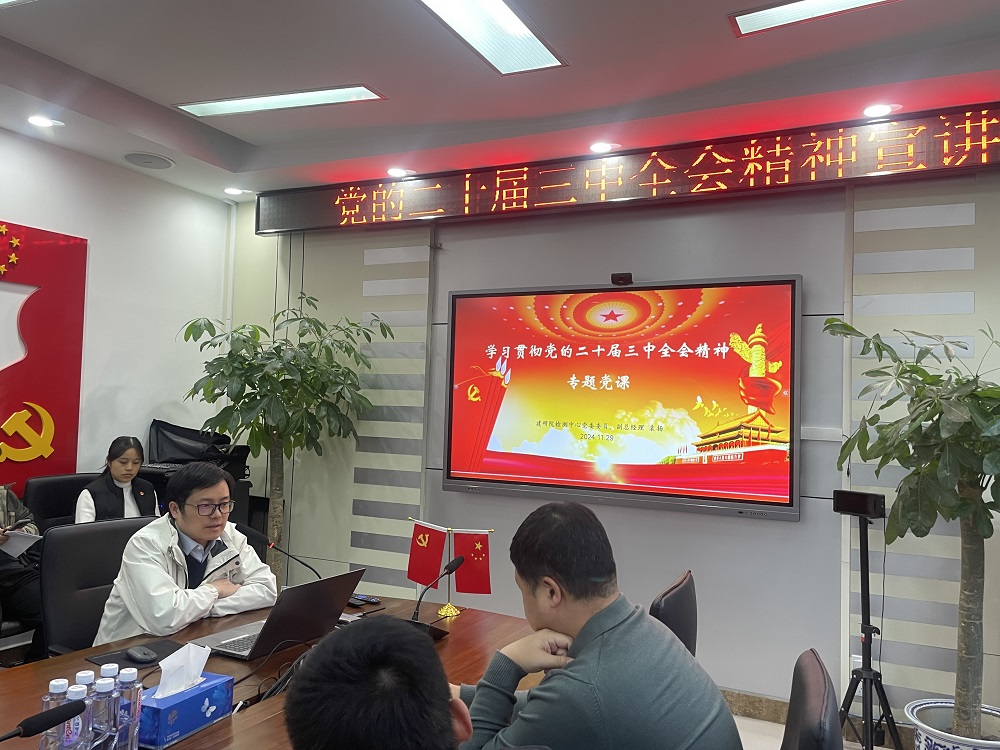 11月25日,检测中心党委委员、副总经理王景贤以《开拓创新继往开来 深入学习党的二十届三中全会精神》为题,结合检测中心实际,深入检测三院党支部、检测四院党支部、加固材料及胶粘剂事业部党支部作学习贯彻党的二十届三中全会精神党课宣讲,从“准确把握党的二十届三中全会主题”“准确理解进一步全面深化改革的重大举措”“新形势下检测中心的重要部署”等方面引导党员深刻认识全面深化改革、推进中国式现代化的重要性和必要性。他强调,在全面系统学习领会三中全会精神的基础上,要重点把握全会关于科技体制改革、国资国企改革、发展新质生产力和党的领导、党的建设的重要部署,聚焦行业发展,适应新形势,开创新局面,服务社会需求,赋能科技创新,推动检测中心进一步向全面深化改革阔步前进。