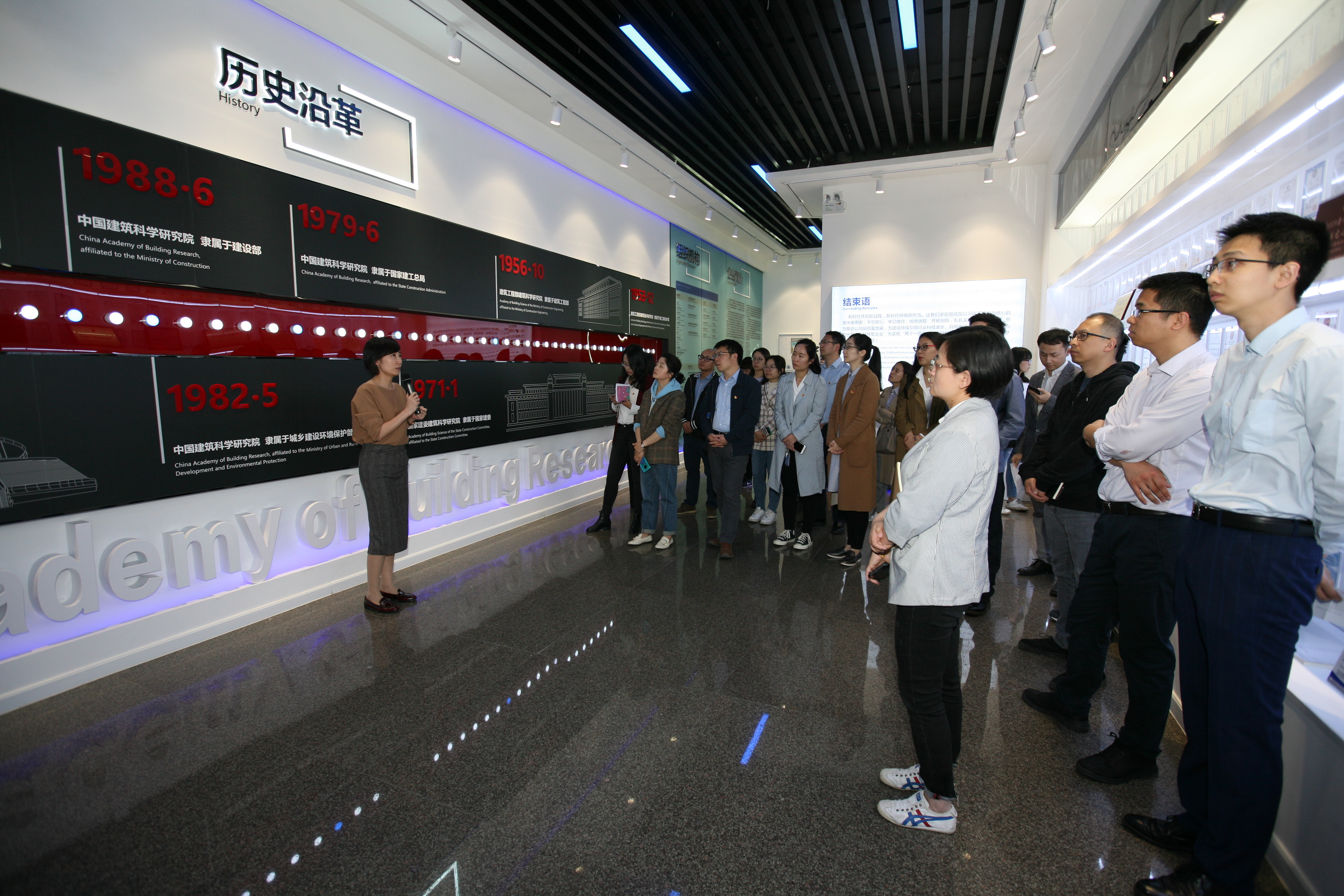 在公司展厅,全体人员深入了解了60多年来一代代中国建研院人响应国家号召、服务国家需要、参与国家现代化建设的光辉历程。