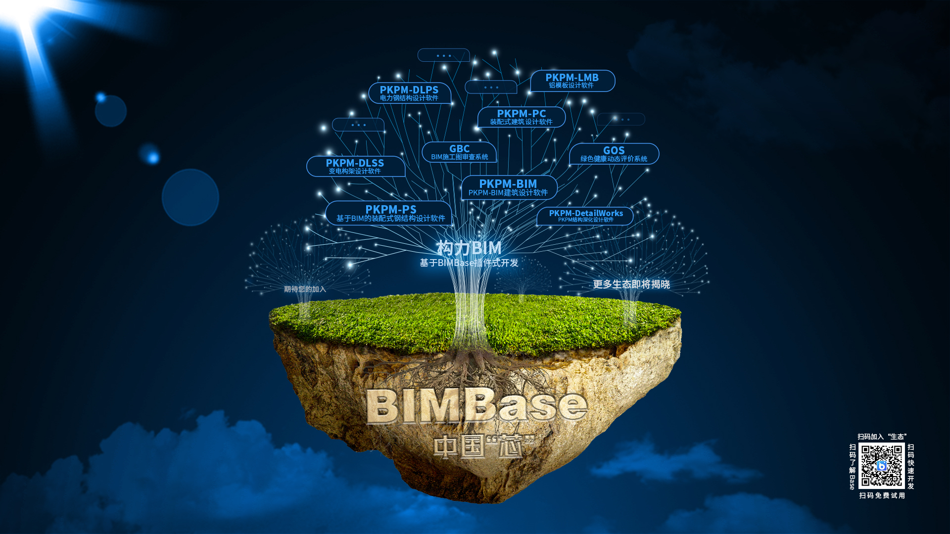 基于自主BIMBase平台研发的建筑领域BIM系列应用软件,包括全专业协同设计系统、装配式建筑BIM设计软件、施工系列软件、钢结构设计软件、PKPM结构深化设计软件、铝模板设计软件等,将数字化、智能化和专业化技术集成融合,实现工程项目各参与方的数据共享和协同工作,助力中国智能建造高质量发展。