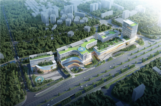 项目毗邻海港及深圳国际机场,具有特殊的地理优势,建筑面积约20万平方米,最大建筑高度达63.55米,设置床位800张,门诊预设25个临床科室,可满足日门诊量3000人次以上、年门诊量100万人次以上需求。项目总体设计理念以空海特色的建筑形象贯穿建筑整体,住院楼代表飞机的形态,机场医疗急救中心宛如民航客机的尾翼,行政后勤科研教学培训综合楼的高起正如海上的灯塔指引着未来的方向,寓意现代医学科技为病患的康复之路护航,体现以患者为中心的核心价值。