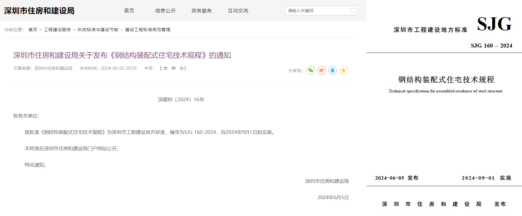 6月5日,由中国建研院深圳分公司主编的深圳市工程建设地方标准《钢结构装配式住宅技术规程》SJG160-2024正式发布,并将于2024年9月1日起正式实施。
