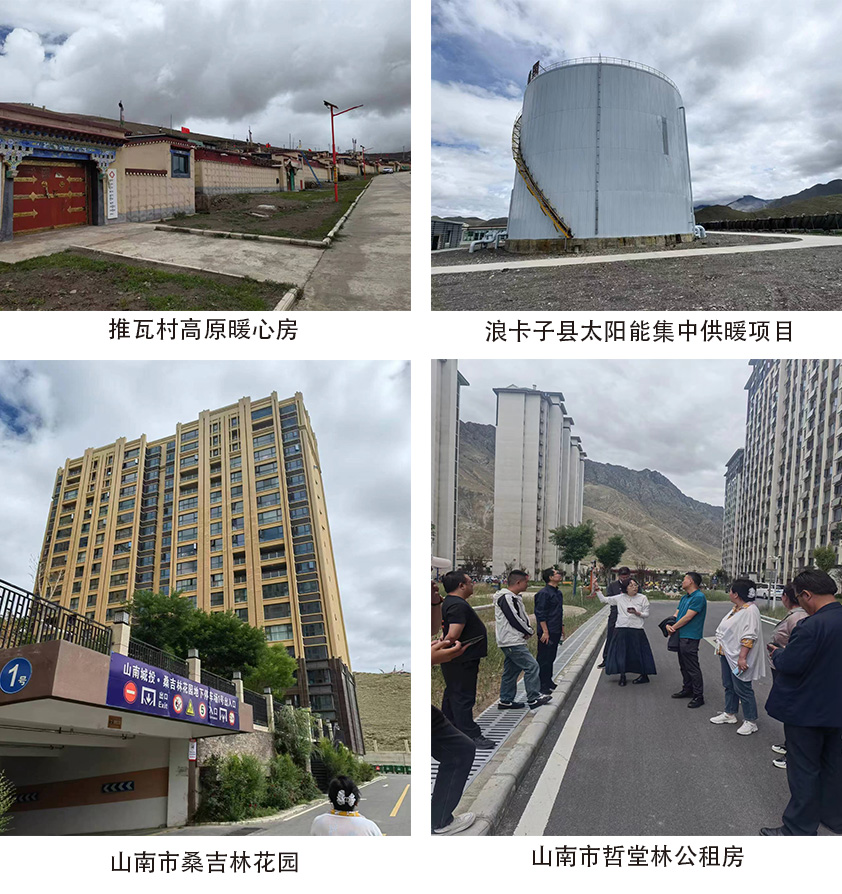 调研组在我国海拔最高的行政乡—浪卡子县普玛江塘乡,对推瓦村(海拔5070m)高原暖心房开展了调研,考察了浪卡子县县城太阳能集中供暖项目;详细调研了山南市区的桑吉林花园商品房项目、哲堂林公租房项目;在拉萨市,调研组对区直单位援藏干部周转房、商品房紫御名都展开了调研。
