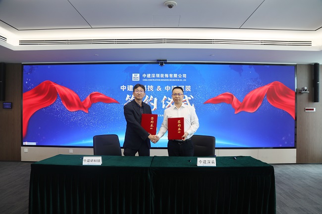 8月23日上午,中建研科技与中建深圳装饰有限公司(以下简称“中建深装”)在深圳签署战略合作协议。中建研科技党委书记、董事长刘军进,中建深装党委书记、董事长刘洋出席签约仪式并代表双方签署协议。签约仪式由中建深装总经理杨雨霏主持。