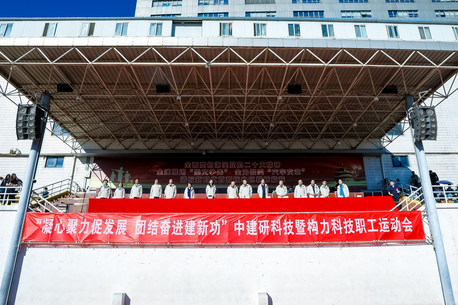 开幕式由中建研科技党委副书记、总裁刘枫主持。中国建研院党委副书记、工会主席王阳代表中国建研院致辞,中建研科技党委书记、董事长刘军进代表中建研科技致辞,构力科技董事长马恩成代表构力科技致辞,运动员代表和裁判长宣誓。