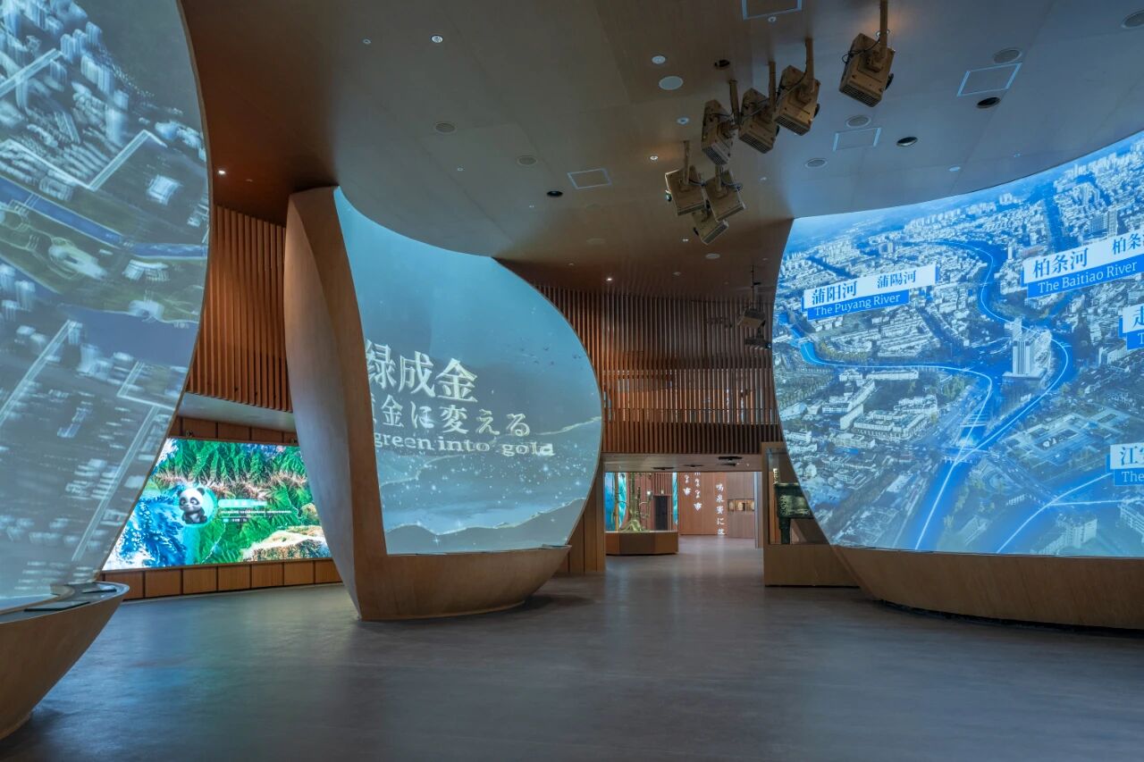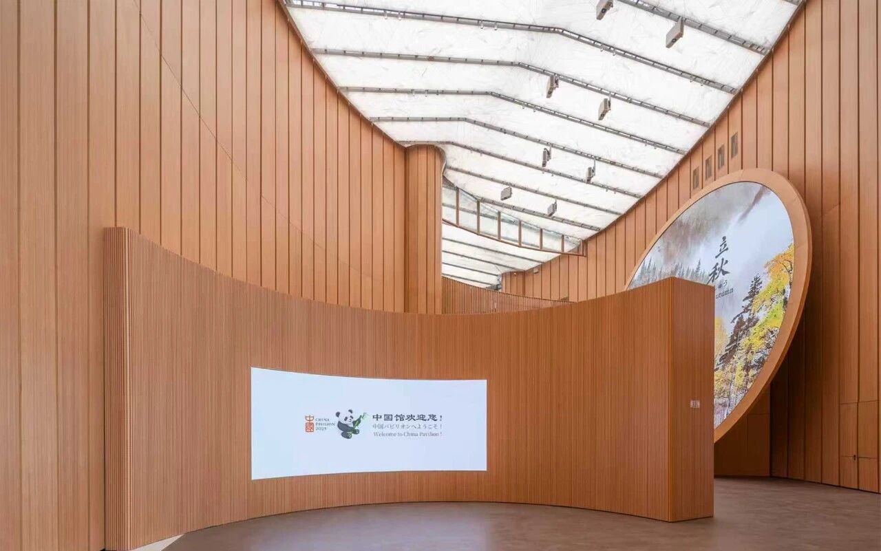 在绿水青山展区,重点展现新时代中国坚持“绿水青山就是金山银山”理念,加快推动经济社会发展全面绿色转型,推动生态文明建设取得举世瞩目的巨大成就。通过多媒体展台,展示都江堰水利工程、桑基鱼塘等全球重要农业文化遗产的“千秋智慧”,生态文明建设“厦门实践”为代表的城市综合治理案例,塔克拉玛干沙漠生态屏障锁边合龙等生态修复案例,湖南十八洞村将生态优势转化为发展优势等美丽乡村案例,以及五大国家公园的生物多样性保护案例等。通过木雕作品展现鉴真东渡等中日友好交往历史长河中的标志性场景,让世博会成为推动和平发展、彰显人民友谊的平台。中国馆主题影片以普通中国人一天中的“十二时辰”为线索,展示新时代不同地域、民族、年龄的中国人每天辛勤工作、幸福生活的点滴日常,并串联起中国瑰丽的自然和人文景观