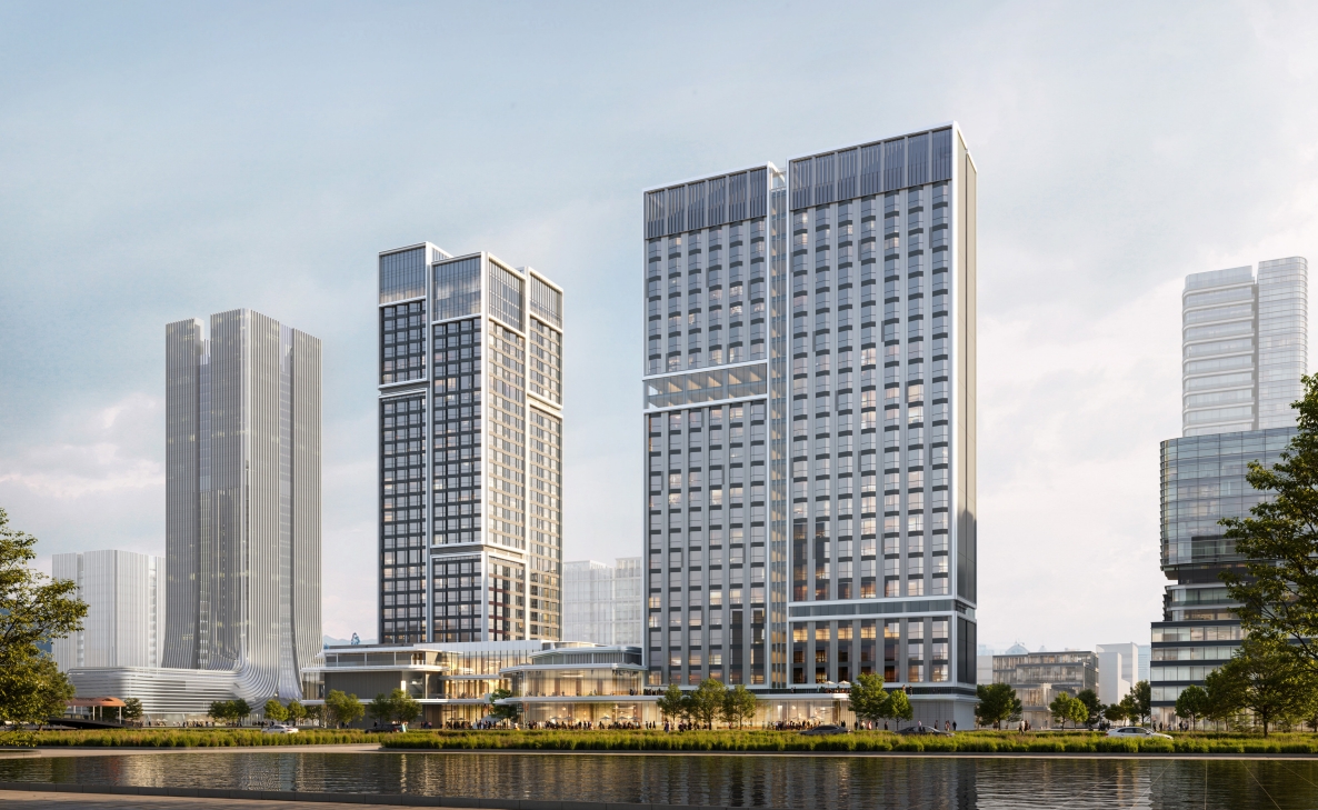 酒店中心A-1地块一期项目由济南先行投资集团开发建设,规划140米超高层地标,总建筑面积约12.5万平方米,配置约1000间客房。差异化引入万豪国际集团旗下五星级威斯汀酒店及四星级源宿酒店品牌,构建多层次服务体系。