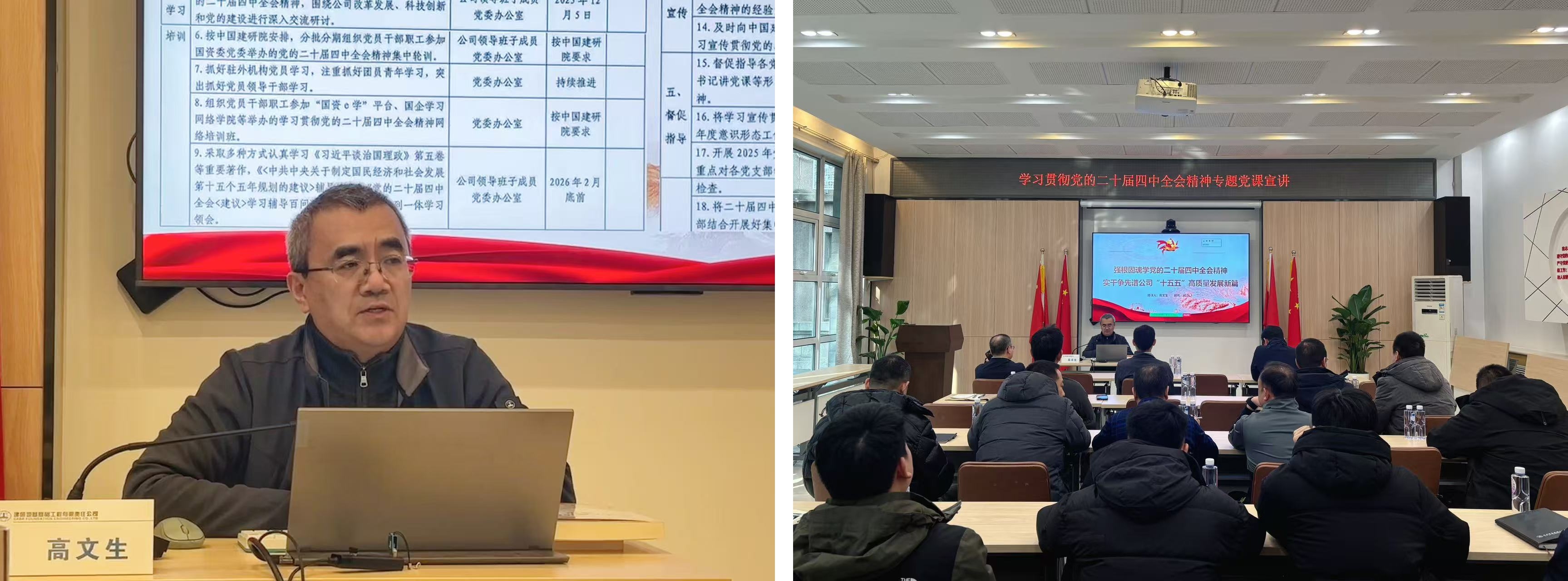 为推动党的二十届四中全会精神学习贯彻往深里走、往实里走,切实把全体党员干部的思想和行动统一到党中央重大决策部署上来,建研地基领导班子率先垂范、发挥领学促学示范作用,近期深入分管部门、联系单位,陆续开展一系列主题鲜明、内容深刻、务实有效的专题党课宣讲活动,推动全会精神入脑入心、落地生根。