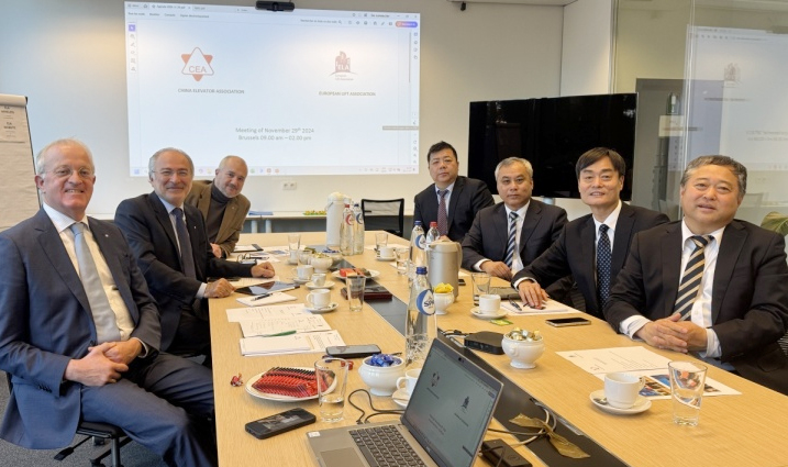 11月24日至30日,由中国建研院副总经理李军,中国电梯协会副会长宫剑飞、秘书长张乐祥,中国建研院建研防火董事长孙旋一行组成的中国电梯协会代表团赴巴黎和布鲁塞尔对欧洲电梯标准委员会(CEN/TC10)、欧洲电梯协会(ELA)进行访问,并开展技术交流与洽谈合作。