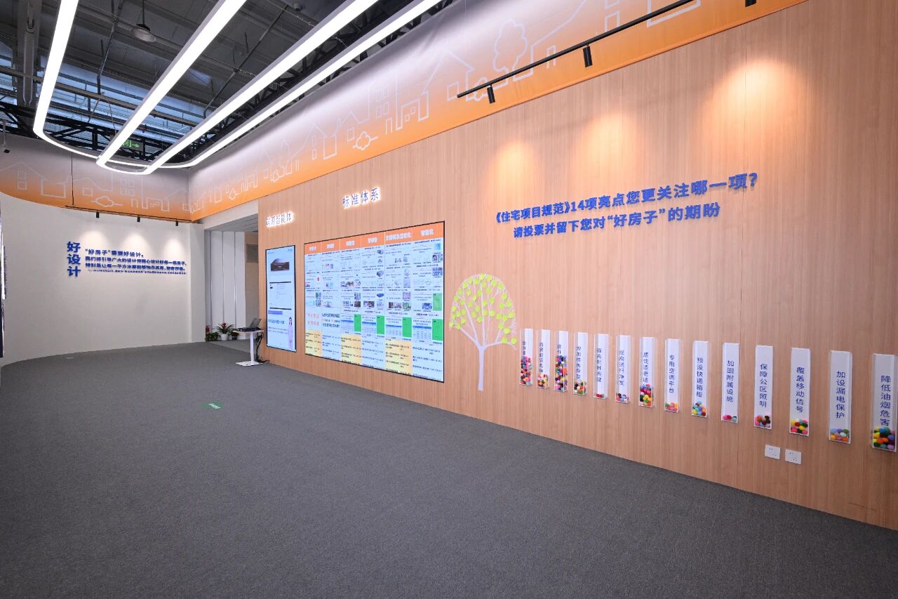 好标准互动投票区:以《住宅项目规范》14个提升内容为核心,设置了投票及互动区域,以呈现居民心目中的“好房子”。