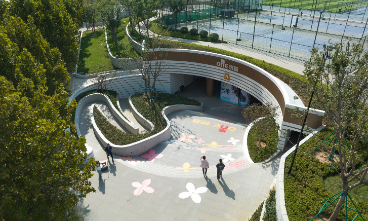 舜泰广场智慧停车项目是集停车与公共运动设施为一体的综合功能建筑。项目场地原为济南市舜泰商务办公园区中央的公共运动场地,为解决片区停车容量不足、道路交通拥堵、环境安全度差、市容品质低下等问题,在运动场地下方建设地下集中式停车设施,地上还建运动设施及城市公共活动空间。