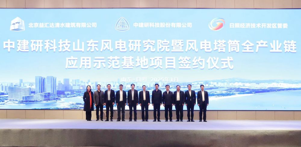 1月25日,中国建研院党委副书记、总经理樊金龙一行赴日照市交流考察,并参加由中国建研院所属中建研科技、日照经济技术开发区管委和北京益汇达清水建筑有限公司联手共建的风电塔筒全产业链应用示范基地项目签约仪式。
