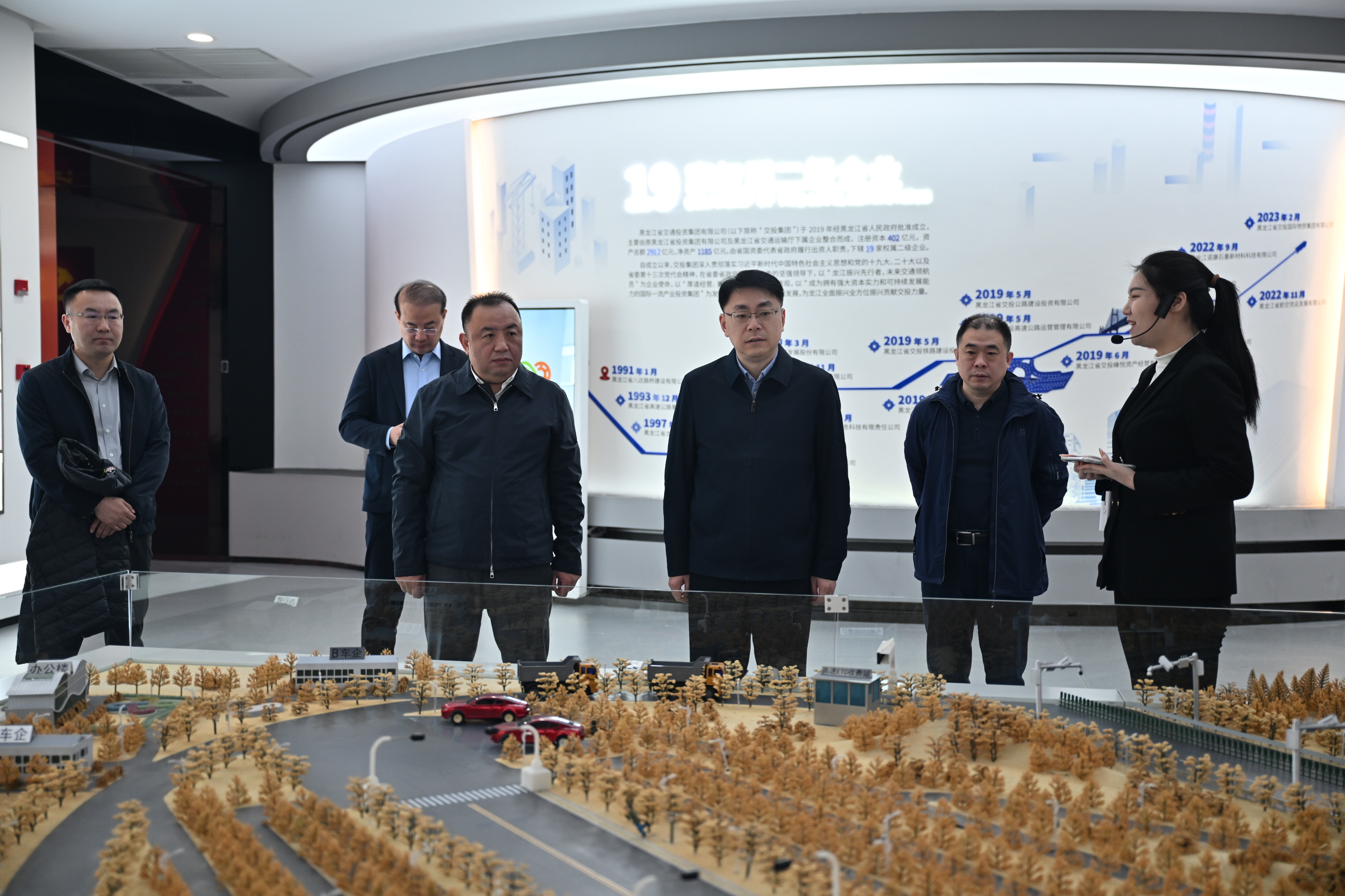 调研交流前,王阳一行先后参观了交投集团联创展示中心、数智运营中心,深入了解交投集团在交通全产业链布局、数字化转型、交旅融合运营等领域的创新实践成果。
