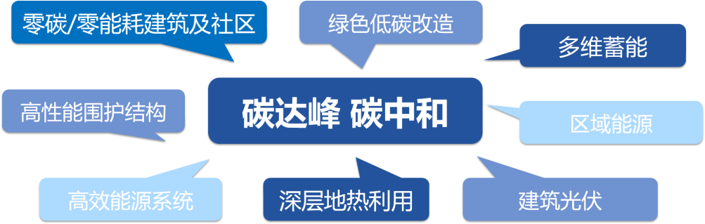 中国建研院作为科技型央企,充分发挥责任担当,高质量支撑完成国家建筑领域“双碳”战略技术路线图制定工作,为构建我国“双碳”战略“1+N”政策体系提供关键数据支撑和技术保障。中国建研院坚持以科技创新为引擎,持续推动绿色低碳发展,自“双碳”目标提出以来,在零碳/零能耗建筑与社区、可再生能源利用、高效建筑能源系统、区域能源系统优化等领域,开展了一系列关键技术研究。