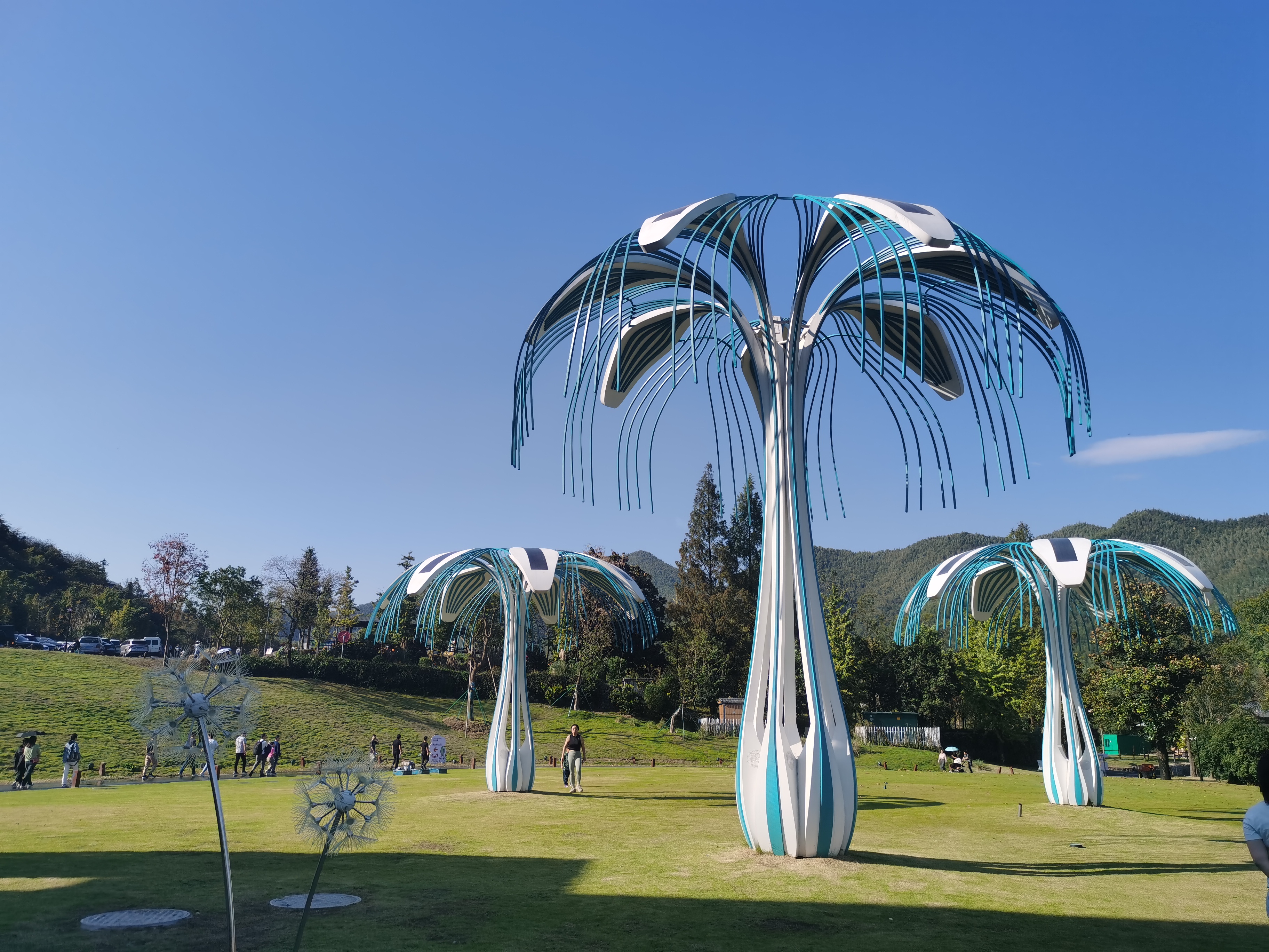 同时,在“余村印象”周边建设了3棵光伏树白天将光伏板吸收的能量储存起来,用于晚上照明。平均1棵光伏树全年可发电1825千瓦。通过营造公共绿色空间和各类生态保育措施,积极引导居民广泛参与生态共建共享,实现生态保护与乡村振兴深度融合,打造人与自然和谐共生的美丽乡村样板。