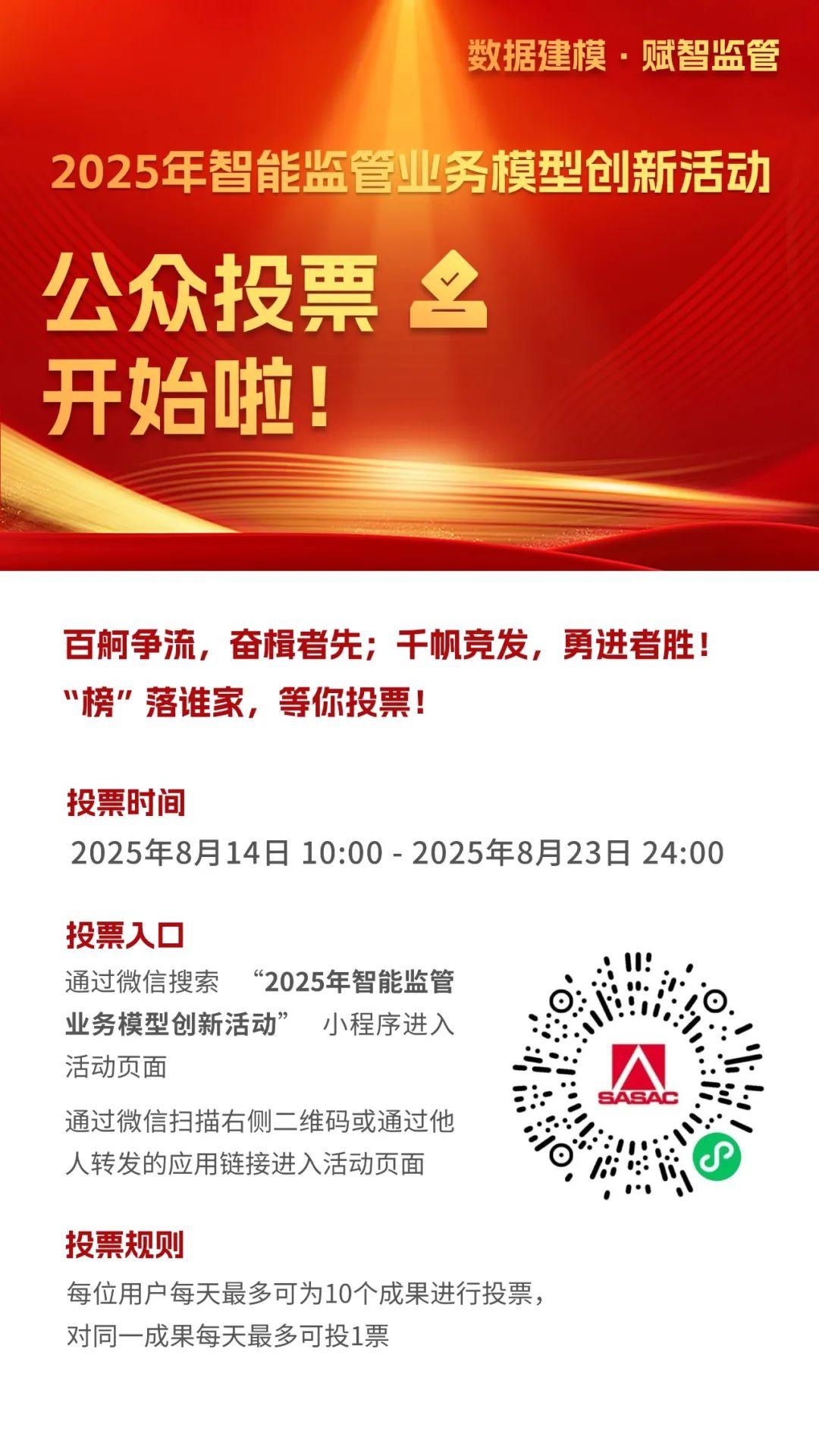 近期,中国建研院法务审计部、数字化管理部联合北京构力科技有限公司,参与国务院国资委组织的2025年智能监管业务模型创新活动,参赛作品为“建筑行业违规转分包过程监管模型”,目前活动进入成果初评阶段,形式为小程序公众投票,欢迎公司广大干部职工积极支持投票。