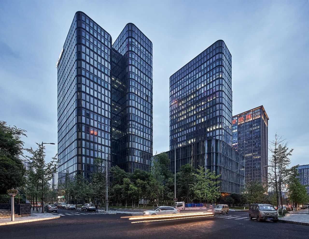 成都大源国际中心作为成都市高新区内重要的大型公共建筑,集办公、商业、居住、娱乐、餐饮健身等功能为一体,两塔楼间为公共广场,塔楼面向主路,错落的双塔建筑形成大门状入口,为该地块最重要的立面创造出生动的剪影,是未来成都市城市形象的重要载体和公共空间中重要的活动场所,也是成都市首座具有呼吸式墙系统的大型综合体建筑。项目由中国建研院建筑设计院和德国gmp国际建筑设计有限公司联合设计完成,总建筑面积21.47万平米,设计中沿承了成都市高新区总体规划,建筑创意独特,建筑外形精致简洁,立面风格现代,内部空间处理变化丰富,与城市环境交融,充分体现现代化的办公空间和开放的建筑设计理念。项目结构的清晰性指导着建筑体量和立面的设计,又在其中包容了高度的可变性,丰富了城市界面。