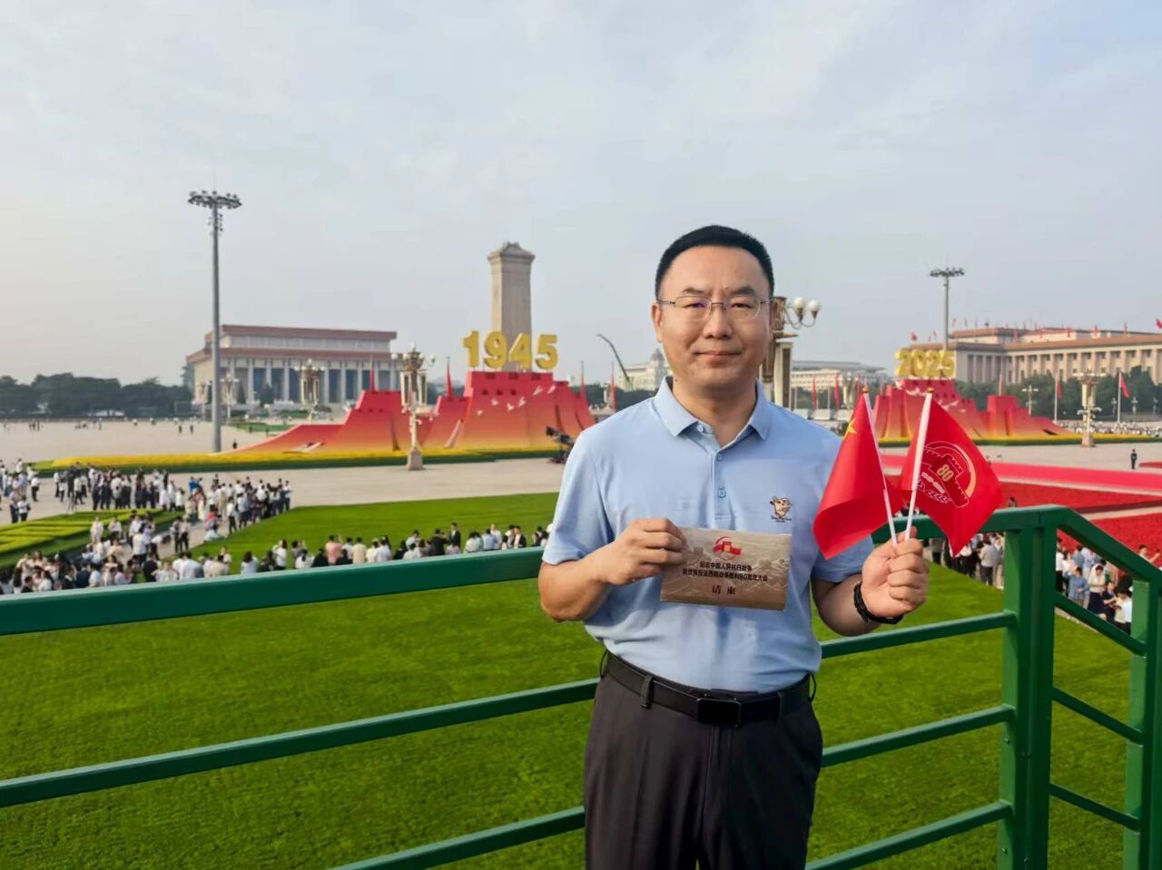 作为检测中心代表现场参加中国人民抗日战争暨世界反法西斯战争胜利80周年纪念活动,我深感荣幸。活动现场,当激昂的《义勇军进行曲》奏响,鲜艳的五星红旗冉冉升起时,心中的爱国之情被瞬间点燃。《没有共产党就没有新中国》《歌唱祖国》等激昂旋律使在场的每位观众都无比振奋,既为祖国的强大倍感自豪,更因身为这个伟大国家的一员而满怀荣光。阅兵仪式中,各梯队依次登场、气势恢宏:徒步方队步伐铿锵、尽显昂扬斗志;战旗方队猎猎飘扬、传承红色功勋;装备方队硬核亮相,以自主创新成果彰显大国底蕴;空中梯队呼啸而过,用先进战力展现国防实力跃升,每一幕都让人热血沸腾。此次阅兵,既是为纪念抗战伟大胜利,弘扬伟大抗战精神,更是为铭记历史、缅怀先烈、珍爱和平、开创未来。