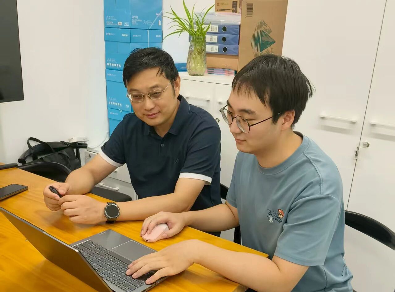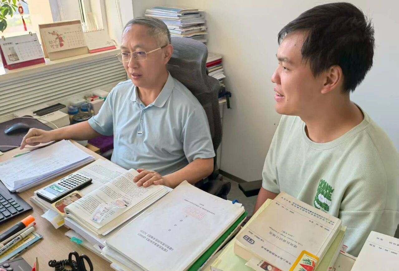 2025年硕士研究生张诗野(右)请教导师孟冲论文。张诗野表示,作为孟冲老师的首位研究生,我有幸在科研与生活的各个方面都得到了悉心指导与关怀。与孟老师相处的两年里,我在专业学习、课题实践、项目推进等方面都有了显著的提升。我将秉承老师的治学精神与做人风范,脚踏实地、笃行致远,为绿色低碳与健康中国事业贡献绵薄之力。