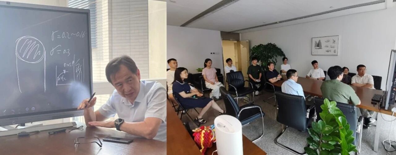 图为2022年中国建研院首席专家、全国工程勘察设计大师、研究院常务副院长肖从真在课题组组会上讲解技术要点。学生们表示,在肖从真大师的课题组,有着每周二早8-9点召开组会的传统,在肖从真大师的指导下,组会成为知识传递与思想碰撞的绝佳平台。他通过公式、图表细致讲解技术要点,将复杂知识拆解得清晰易懂;研究生们围坐成圈,目光聚焦,或凝神思索,或快速记录,全然沉浸在学术交流中。这般场景,尽显课题组在学术钻研上的专注与热忱,也让师生间的学术互动更显鲜活,为科研探索注入蓬勃动力