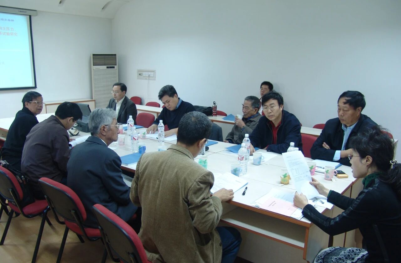 2007年中国建研院地基基础专家、导师闫明礼(二排右一)参加博士研究生佟建兴(二排左一)的学位论文答辩会。闫明礼老师治学严谨、为人师表,重视专业理论与工程实践相结合,为我国CFG桩复合地基技术的研发推广和人才培养做出了重大贡献。