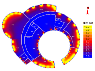 天然采光模拟软件PKPM-Daylight支持全阴天稳态计算、全年8760小时逐时动态计算,自动统计采光系数、照度达标小时等关键指标,指导采光设计优化。