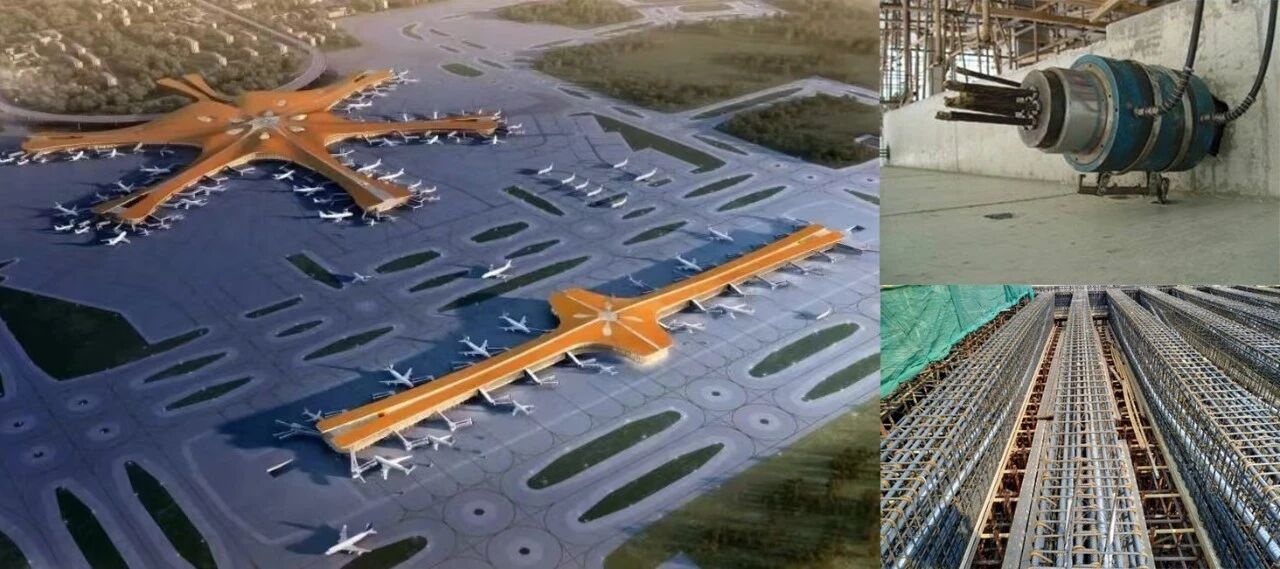 北京大兴国际机场旅客航站楼及综合换乘中心(核心区)工程建筑面积约60万平米。中建研科技承担其旅客航站楼及综合换乘中心工程预应力工程,负责的预应力专项施工涉及有粘结、无粘结筋,主要用于梁、板的无粘结温度应力筋及大跨度梁、转换大梁的有粘结预应力筋。为减小超长混凝土开裂问题,该工程大部分楼层梁和板内布置温度预应力筋采用无粘结后张预应力技术,充分保证工程结构安全。